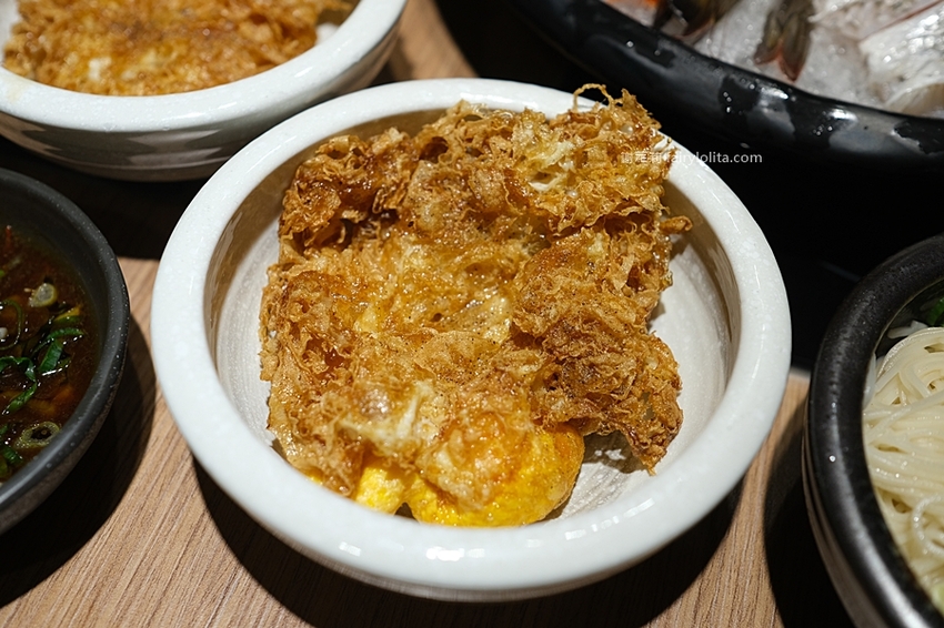 與其說麻油,我倒覺得它的麻油味比較清淡,倒是那炸出來的酥脆口感,完全讓人一吃就上癮,依我的印象來說,我覺得台中火鍋真的蠻流行這個東西,但我一定要跟你們說,「良食煮意有機鍋物」的炸蛋,可是我目前在台中吃過最好吃的,這可是一點都不誇張。
