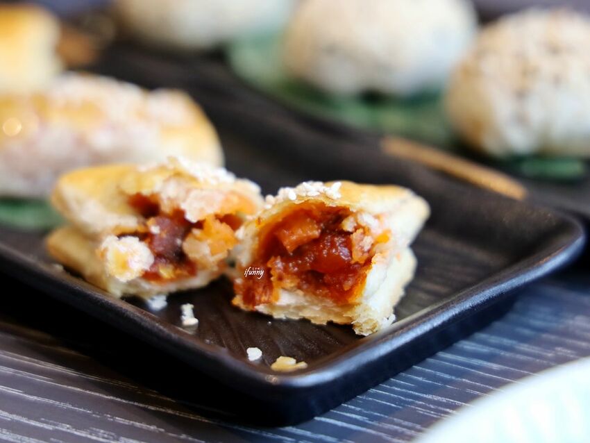 把叉燒包的外表,改成層層酥香的酥皮,一咬即碎的酥皮自帶香氣,甜滋滋的叉燒,軟滑香甜。
