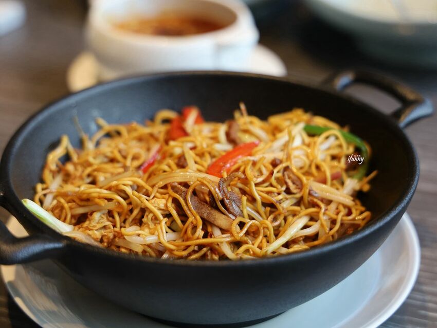 青雅中餐廳-銀芽鵝絲炒麵,以廣炒麵為基底,加上銀芽及鵝絲,鑊氣十足的廣炒麵,口感軟中帶酥脆,銀芽的脆口,鵝絲的細嫩,整體表現得相當地不錯!