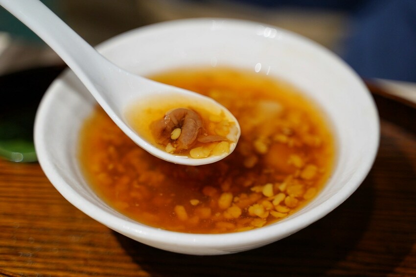 綠豆蒜是以桂圓糖水作為基底,天氣漸漸炎熱,點一碗冰的剛好,甜度來說我覺得蠻剛好的,有淡淡桂圓香氣,綠豆蒜口感也很棒,只可惜量偏少,芋圓、地瓜圓是選用外面手工的,口感很Q軟還不錯!