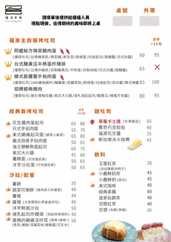 有好多好多早餐在這裡!從中和起家、以鈑烤吐司為主打的福來早餐,除了經典風味,也有許多結合主廚創意的獨家口味,像是阿嬤秘方辣菜脯肉蛋、舅媽的嫩雞涼拌菜、抑或是宛如甜點般的草莓卡士達吐司,在在都把傳統早餐捧出新高度啊!