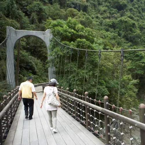 橋面挺寛的,走在上面也不會太晃挺穩的,步道是隻向出入口非圓