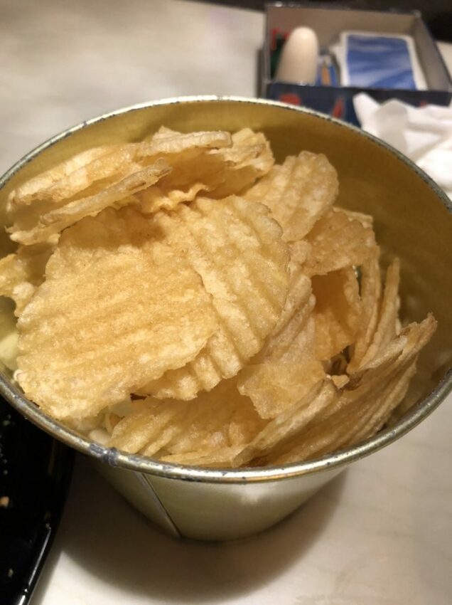 店家招待的洋芋片,底下是滿滿的爆米花,真是大呼過癮~