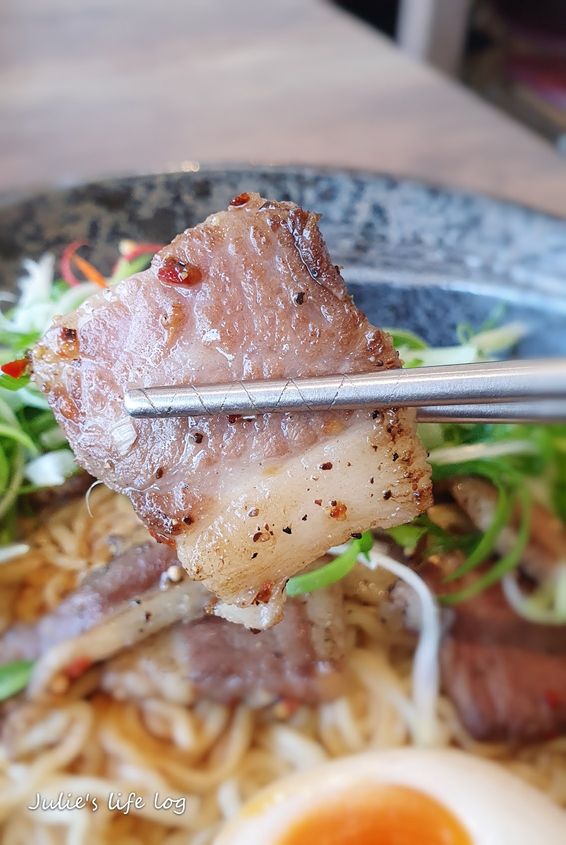 這碗拉麵上桌時,炙燒的香氣撲鼻而來,令人食指大動,先生在旁邊拿著筷子一直問我拍照拍完了沒XD。