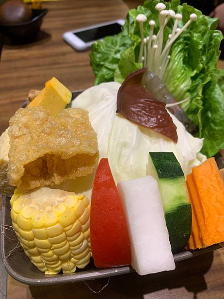牛肉因為同學的分享,除了我原本點的頂級翼板牛和霜降牛之外,還吃到了安格斯雪花牛。霜降牛吃起來像一般火鍋肉片,安格斯雪花牛肉質偏硬不推薦(絕對不是因為我煮太老的關係)。倒是頂級翼板牛驚艷了我的味蕾,肉質滑嫩入口即化,肥肉也不至於過多導致膩口。服務員再給我多來一點~