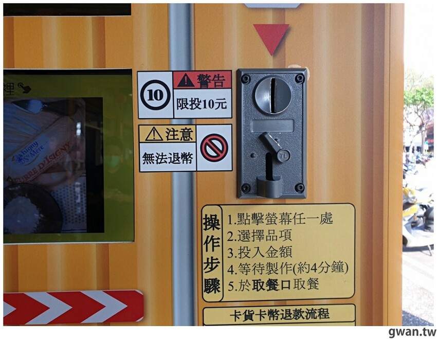 操作上其實蠻簡單的,只要照著下方的操作步驟就能購買,我們第一次使用也能上手喔!但要注意此機台限投10元,無法退幣與找零