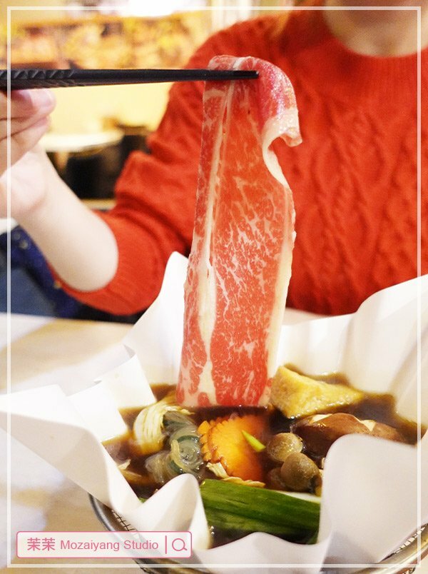 ▼壽喜燒湯頭甜甜的,搭配油花均勻的牛肉片吃起來剛好,吃完肉再吃鍋裡的蔬菜,清甜解膩。