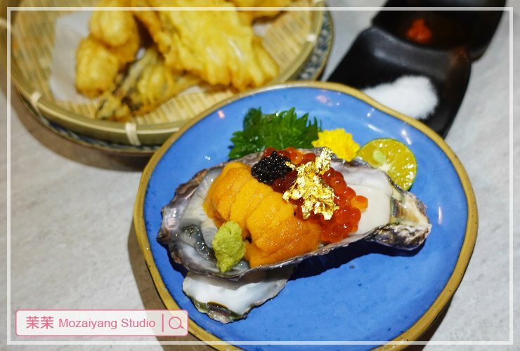 這一道更厲害,超大顆生蠔為基底,再盛上足量海膽、鮭魚卵,佐以魚子醬及金箔,一整個想用浮誇來形容,想一口吞掉又覺得太浪費,還是慢慢品嚐吧!