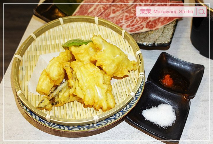 穴子魚炸的天婦羅,一盤分量還不少,還有附上沾醬及鹽巴。