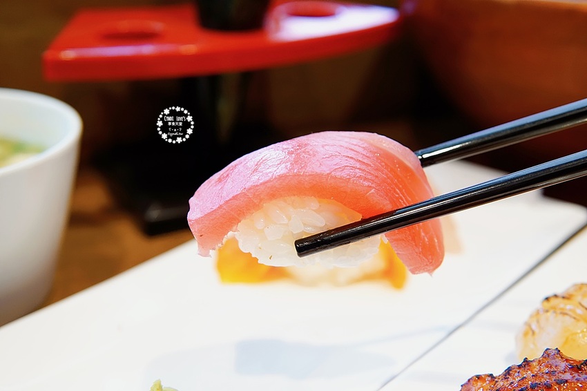 安曇野食卓使用現撈空運直送的漁獲,口感最接近活肉魚,而且只取下腹部位,不但無筋膜組織,擁有最豐富的油脂,呈現透光鮮紅色的鮪魚魚肉,吃起來口感綿密,鮮甜度非常足夠,跟冷凍過的真的口感差很多,吃過就回不去了。