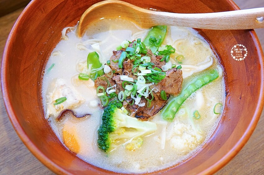 魚介豚骨拉麵的湯頭值得讚賞,此款拉麵的湯頭不是濃湯底,但是卻讓人驚喜交集,8種時蔬菇菌,超甜湯頭滋味,清爽無比,配料也還有鮭魚肉,一點也不馬虎。