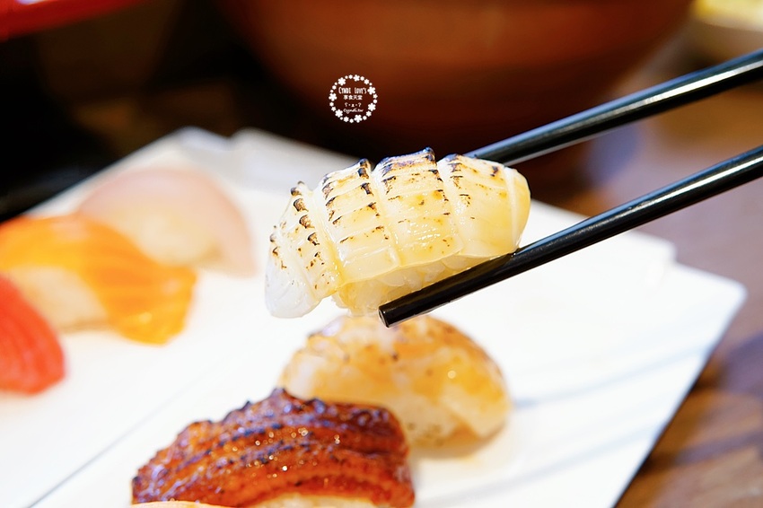 北海道干貝,因為本身的海域,造就優質的天然干貝,炙燒過後的干貝吃起來口感軟Q,鮮甜感在嘴中立刻散開,超級滿足。