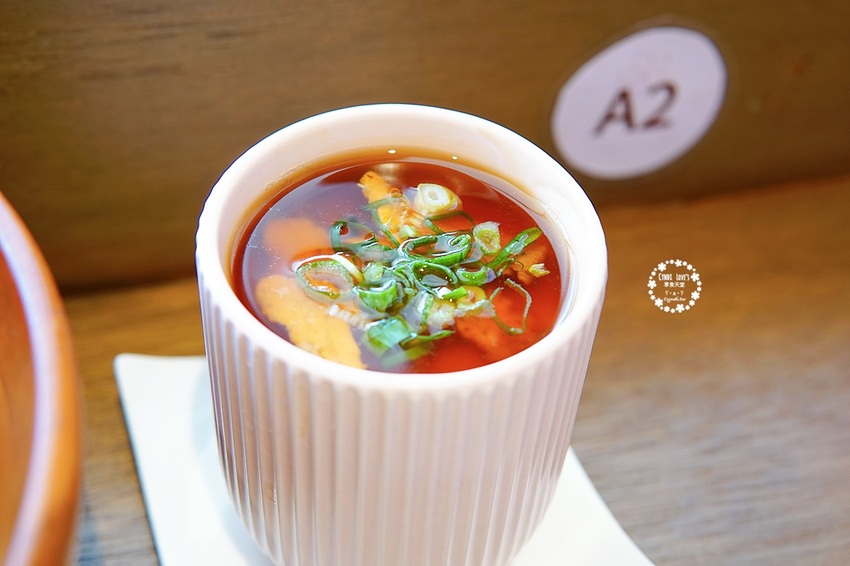 軟嫩的蒸蛋還搭上炙燒過的鮭魚,真的料給的一點都不手軟,茶碗蒸上的醬汁是由初湯(蘋果昆布柴魚高湯+鮭魚高湯)再拌入店家自己調的醬油熬煮而成,不死鹹,與蒸蛋蛋香超級絕配。