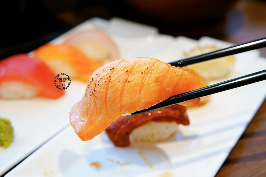 炙燒過後的鮭魚腹,又多了迷人的焦香氣,再加上大火噴燒產生的油脂,更讓視覺上更可口,入口即化的口感,更是讓人回味無窮,鮭魚腹可以選擇生食或炙燒,都有不同的味蕾享受,但不變的是現撈的鮭魚魚腹,天然、自然的清香味,果然夠優質。