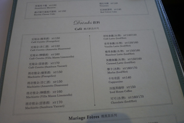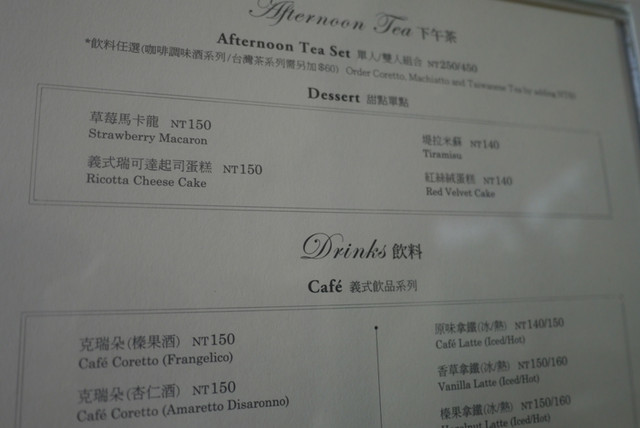 但是在下午茶套餐裡選擇台灣茶跟加入酒精的義式咖啡都是要另外加錢的喔