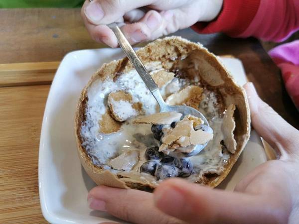 椪餅裡頭的黑糖伴隨著香草冰淇淋,還有店家自己煮的珍珠,其實拌著吃的過程中,讓整個甜味的呈現是相當的溫順