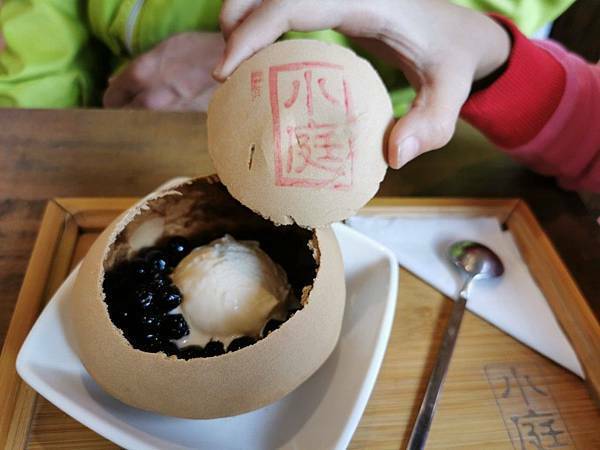 來到這裡必點的莫屬凸餅冰淇淋&小庭梅煎茶。