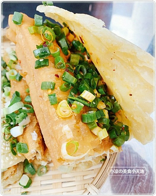 小凉個人比較偏愛滿滿的蔥花加上辣醬在燒餅油條內,堅持要朋友將燒餅打開讓我拍爆蔥的視覺給大家看看,真心感覺蔥好像不用錢的猛塞入XDD