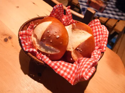 與一般Semmel比起來,外皮較實而且因為有灑上海鹽所以是鹹的唷。