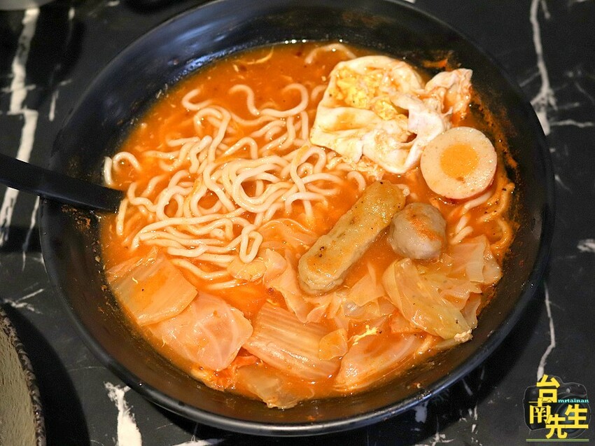 泡菜鍋燒拉麵:麵條跟一般用的意麵不一樣,耐煮不易軟爛,實測上桌10分鐘後都還帶有Q度,搭配香濃微辣的韓式泡菜,吃來相當涮嘴