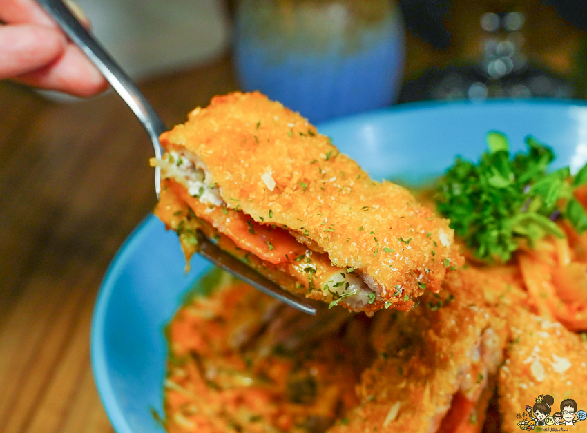 帶出起司鹹香、乳香,熱呼呼豬排咬下酥脆口感好好吃