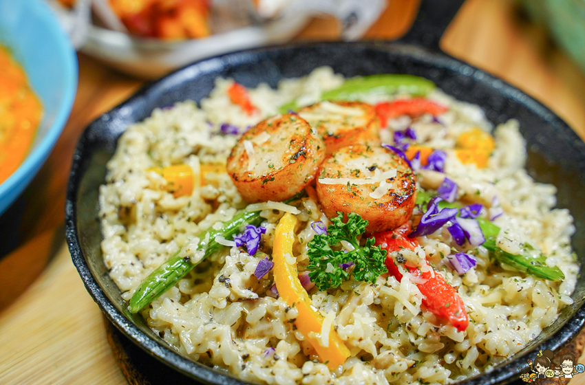 每一口都是多層次,還可以咀嚼到蔬菜、杏鮑菇等水嫩清爽風味,讓燉飯夠味好吃卻不膩