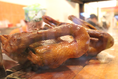 點餐區,可以看到許多的小菜,真的好誘人喔,只有鴨肉的點法比較特別,看點多少錢付多少錢,啥咪意思,就是,工作人員隨手拿了某個大小的鴨肉,問你是不是要這麼大份,yes,當場稱重,告知價錢,然後就動手切啦。