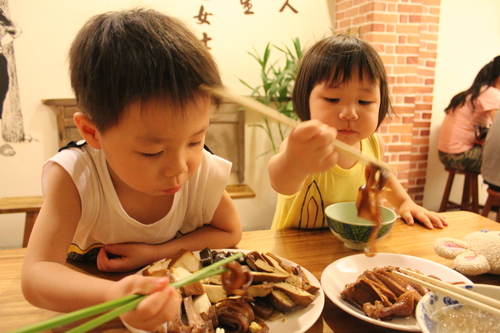 我們點好多,本來有點擔心,會不會吃不完咧,結果沒想到,小菜才放上桌,小朋友們就拿起筷子狂吃了。我們點了百葉豆腐、鴨翅膀、豆干、海帶、鴨肉,這些食材都好入味喔,有一種獨特的煙燻香氣,特別是百葉豆腐,味道也好讚。