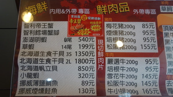 光看到那個帝王蟹就讓人想要流口水啦~價格方面還挺便宜的耶!因為先前珍珍在便利商店裡面的DM看過,但始終沒有下手,就是因為單價太高了,這裡只賣699耶!老闆說他們家的帝王蟹一隻差不多是1~1.2公斤,下次有機會再來板橋,想要買一隻回家讓全家人一起享用!