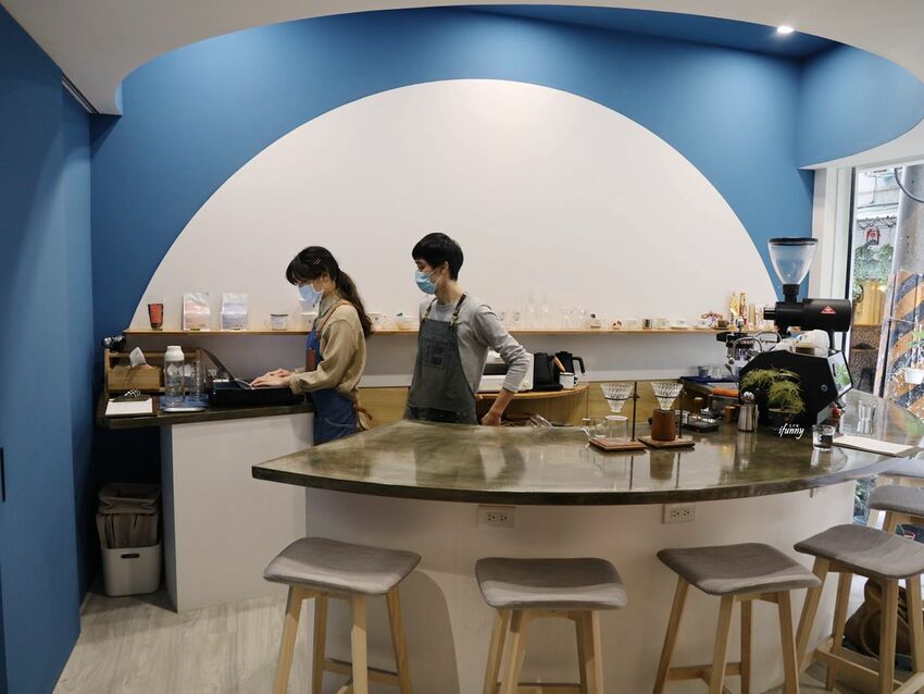 藍白相間的意象,不禁令人想到日本的富士山。吧台區共六個座位,吧台下有貼心的插座。整家店一共十個座位,恐怕假日會一位難求。