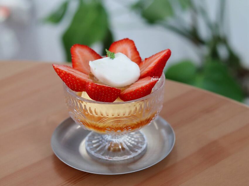 同樣是草莓焦糖布丁,有沒有覺得現今的長相,比較花枝招展呢?(笑)