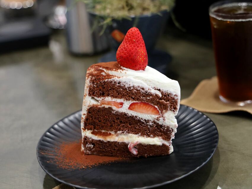 這是採用巧克力牛奶口味的海綿蛋糕,一層香草卡士達、一層香堤鮮奶油、搭上新鮮草莓。細緻的蛋糕體加上滑順的口感,加上草莓的酸甜,這樣一點都吃不膩呢!