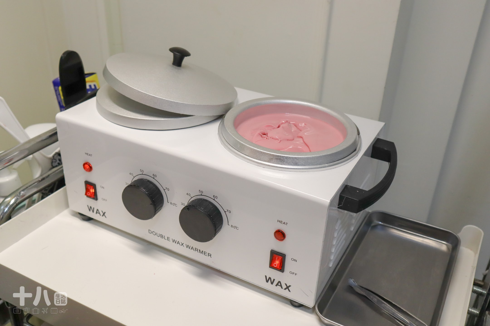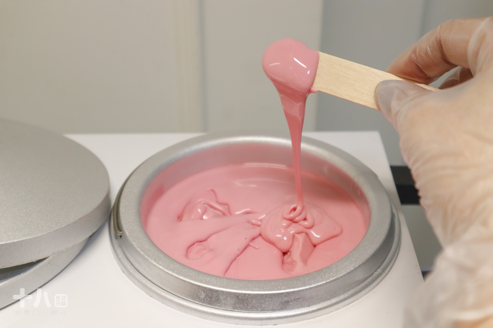 老師會先加熱讓蠟軟化,就可以準備開始除毛,都是採用小面積的除毛方式,讓痛感降低,思蔓兒時尚美學採用的是Lycon 奧圖玫瑰溫和蠟,內含玫瑰、洋甘菊等成分,溫和不刺激,適用於敏感肌膚,連根拔起,不留黑頭,老師除毛用迅雷不及掩耳的速度,就撕下一片的乾蠟。