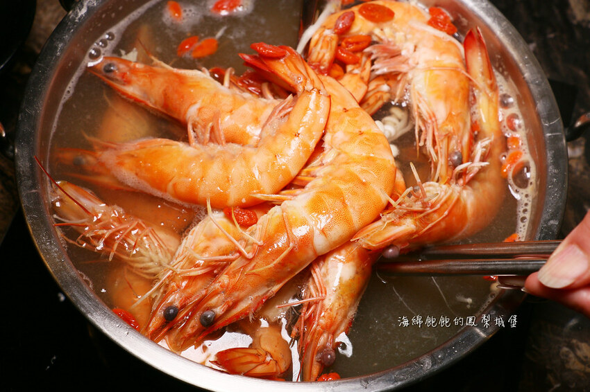 一次6~8隻蝦,這樣湯滾的時候才不會爆鍋!