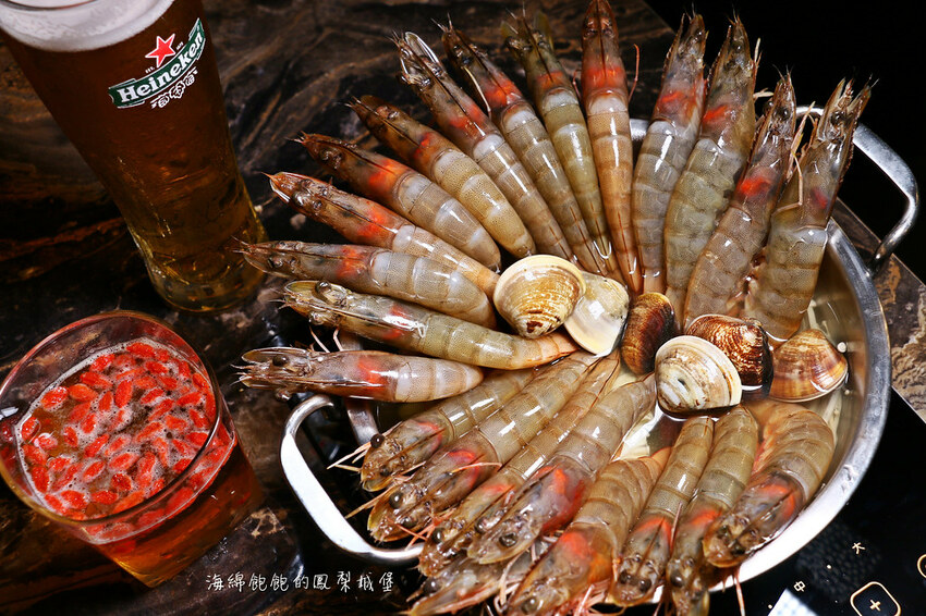 24尾南美白蝦,還附了蛤蠣跟海尼根生啤酒
