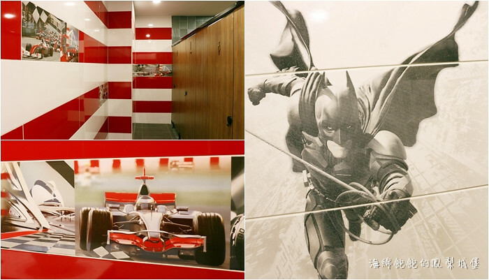 盥洗室也有巧思,圓山店用跑車跟富豪蝙蝠俠裝飾