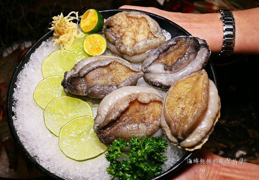活鮑魚也要一人一顆才夠爽,這盤1800元