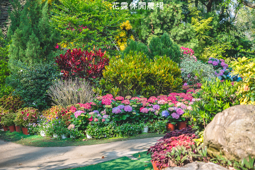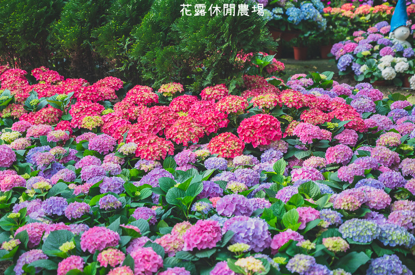 這一區走進來真的會讓人驚呼連連,五顏六色的繡球花太美了啊!雖然都是用盆栽栽種,但經過農場工作人員的巧手之後,把整個繡球花區佈置的超美,不管什麼角度拍都很漂亮,我粉絲頁的大頭照就是在這邊拍的,真的美炸!