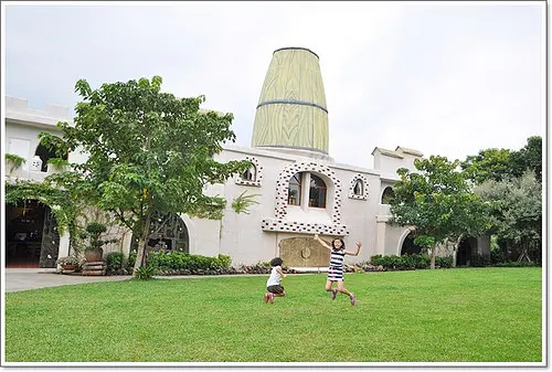 而一旁則是精油主題館和精油城堡民宿,前方的大草坪,小朋友可以自由自在的奔跑和踢踢足球,家長則是可以在旁悠哉輕鬆納涼,閒話家常喝咖啡。