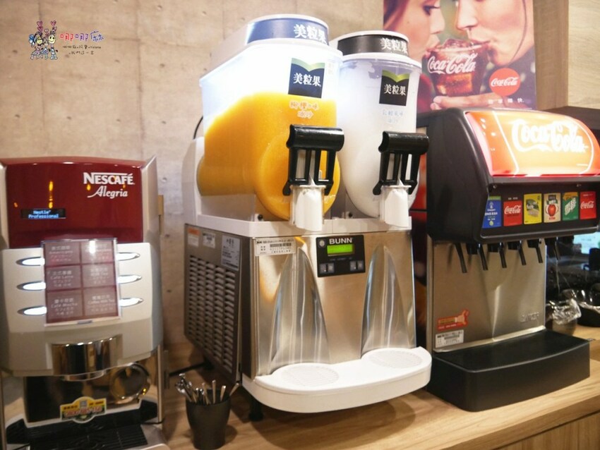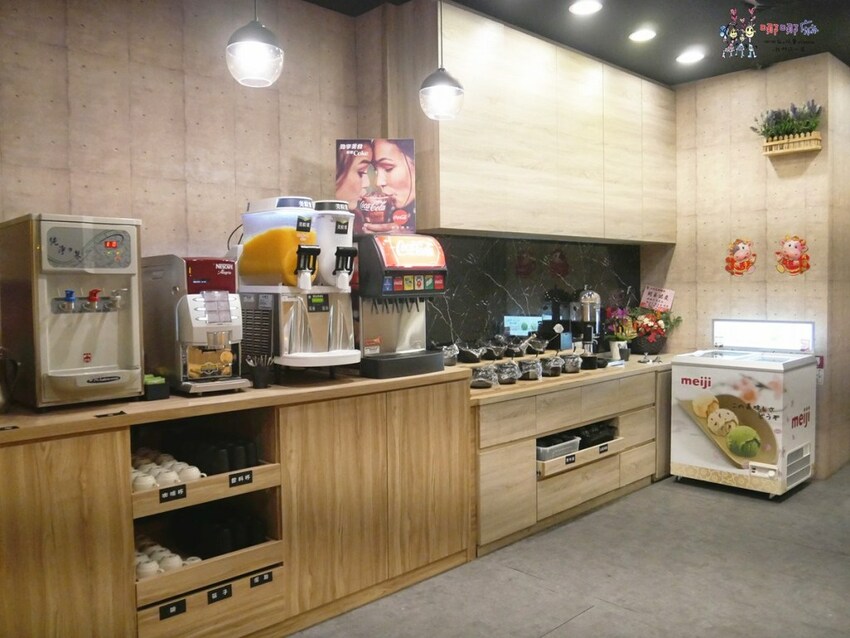 選好餐後可以到裡面去拿自助吧的醬料、飲料和冰淇淋,他們的飲料機選項還蠻多的,冷熱飲都有。