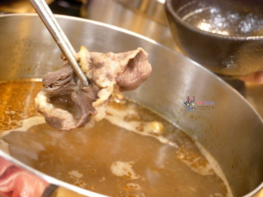 阿寶二話不說先拿了一片板腱下去涮,喂!你動作太快了吧!他們的板腱肉軟得恰到好處,不會太硬或油花太多,喜歡吃瘦一點很推薦他們的板腱牛。