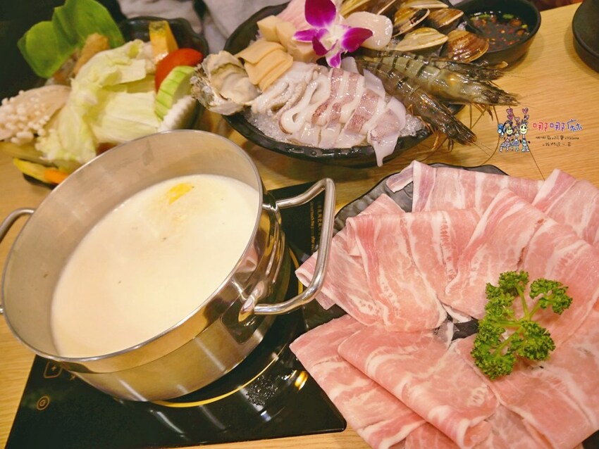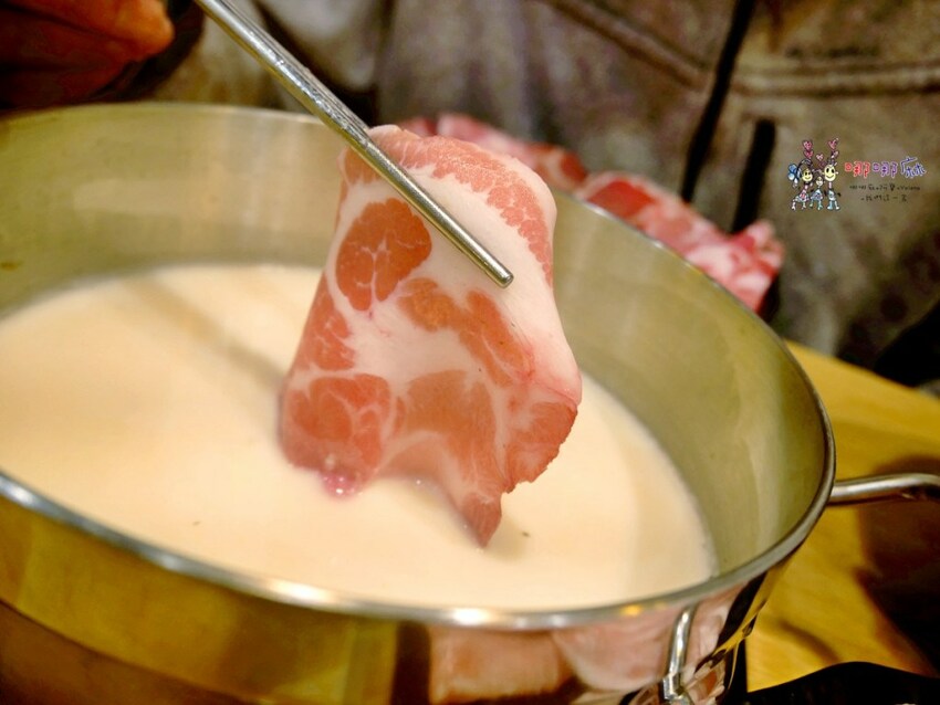 讓我很驚豔的是他們的牛奶鍋,味道非常的香濃,而且還附贈一片起司可以在牛奶滾的時候加進去,拿來涮豬肉和海鮮超級搭。