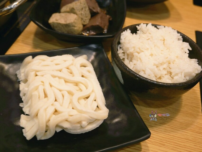 附餐的部分我們選了白飯和烏龍麵,推薦吃法是把烏龍麵放到麻辣鍋去煮,這樣就很有麻辣燙的風味了。