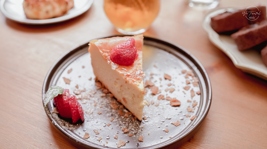 ▲ 焦焦巴克斯,其實吃起來很起司蛋糕,大家吃完評價也很好,但是沒有感覺有焦焦的感覺XD 搭配草莓微微酸的滋味很提味