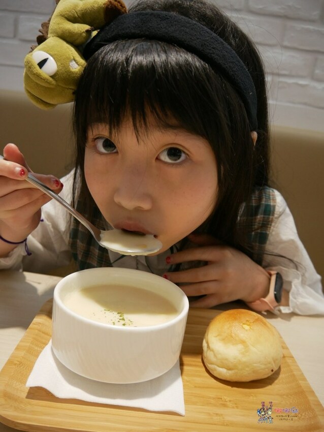 我們升級了一份A餐和一份B餐,A餐有沙拉和湯、爆漿餐包,湯品的部份我選鮮菇湯,還蠻清淡好喝的。