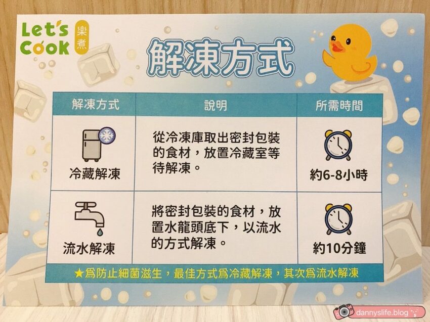 另外還有食材的解凍方式說明