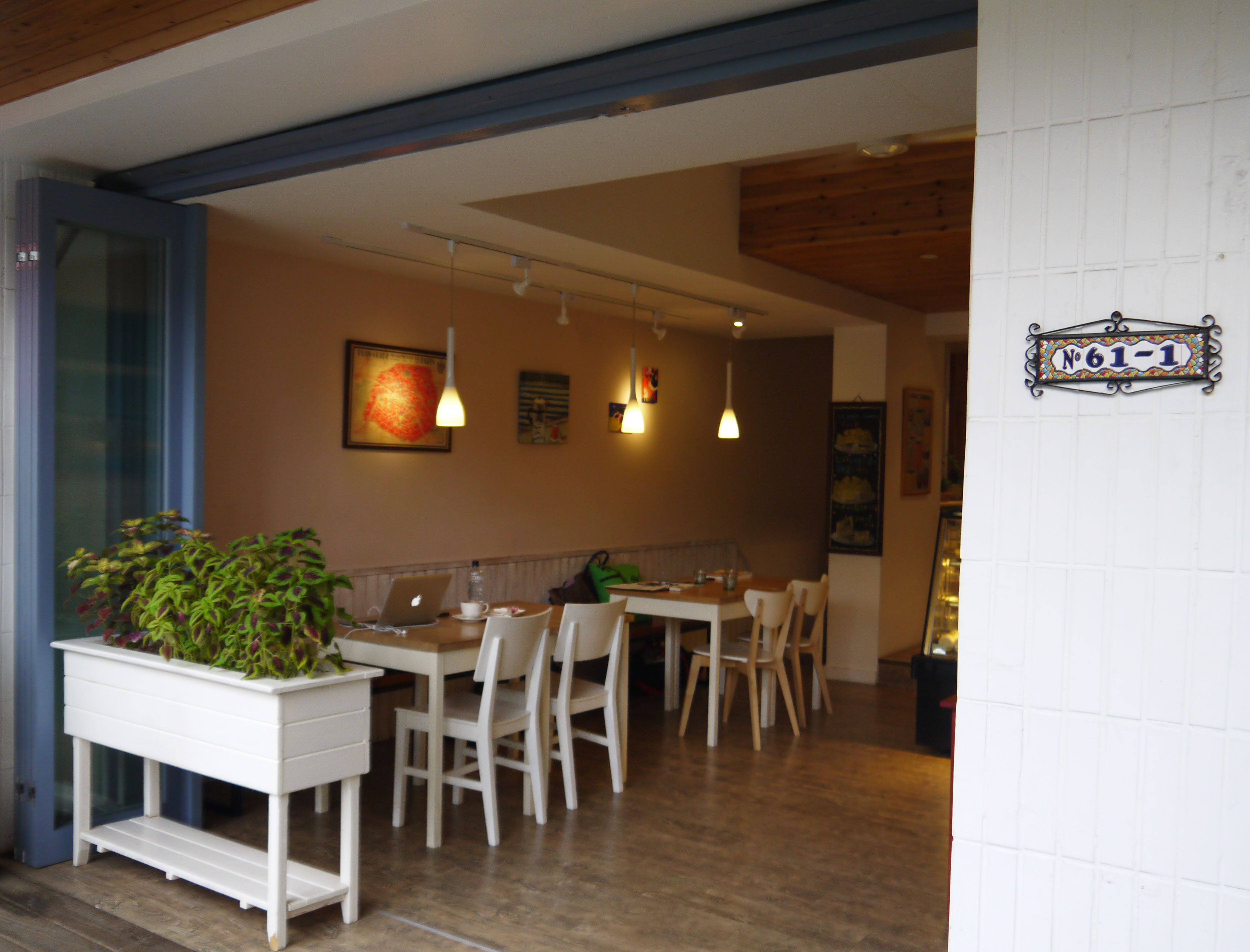 特製的門牌。沒有門的咖啡館。好像走進朋友的家聊聊天,大門隨時敞開,歡迎社區的居民一起來享用,這裡只有7張桌子,靠牆的位置會擺上抱枕,果然很適合帶一台筆電,在這裡窩著~