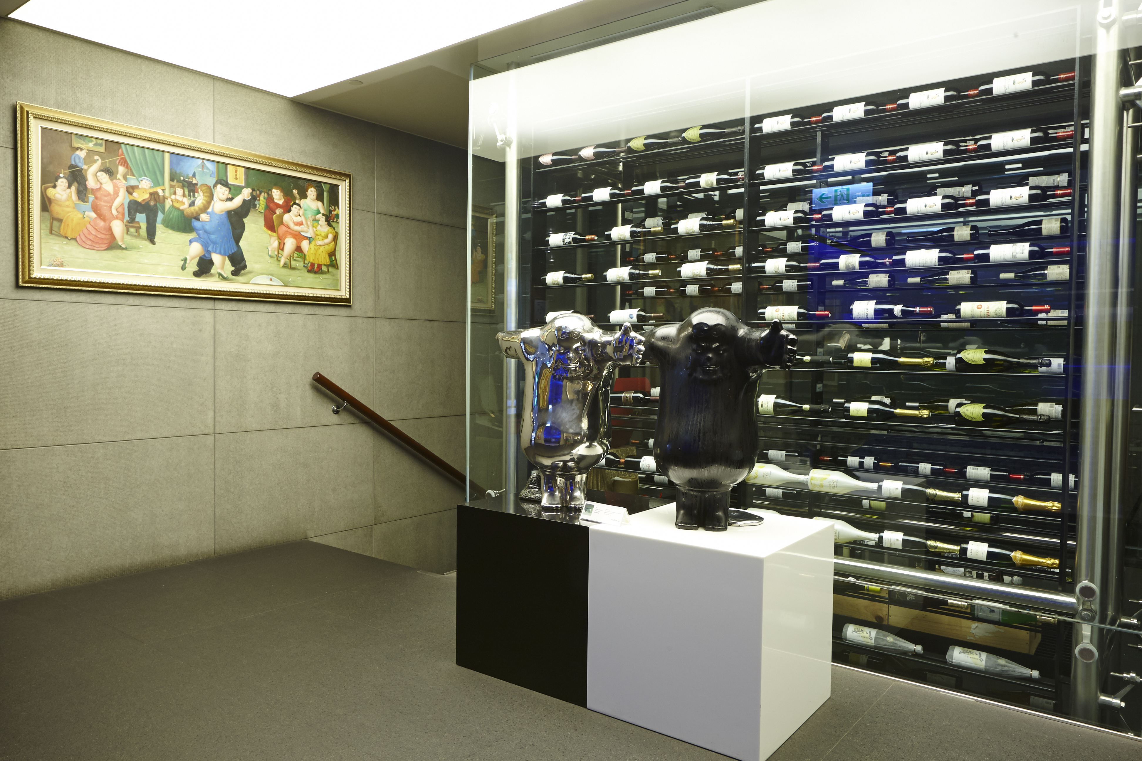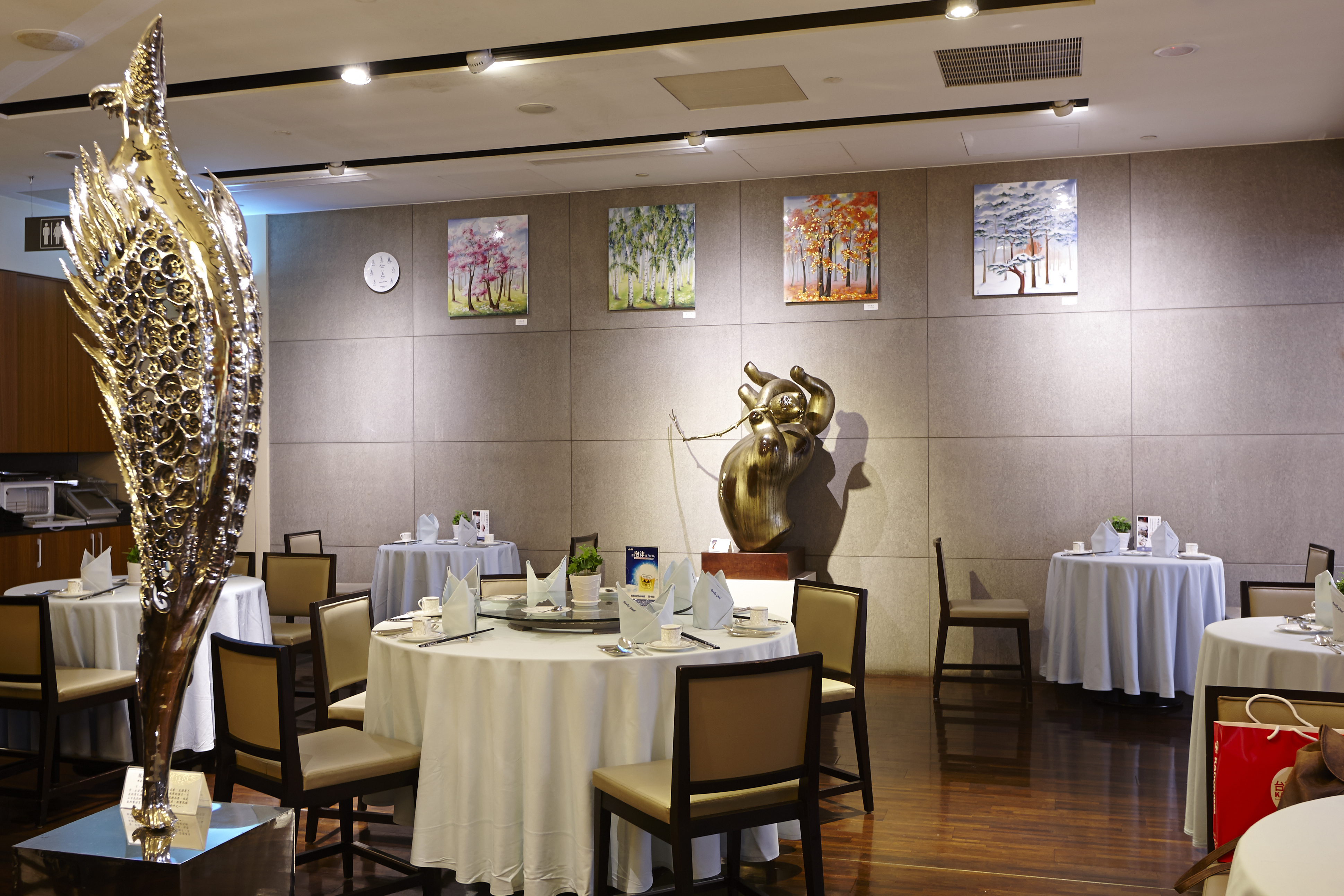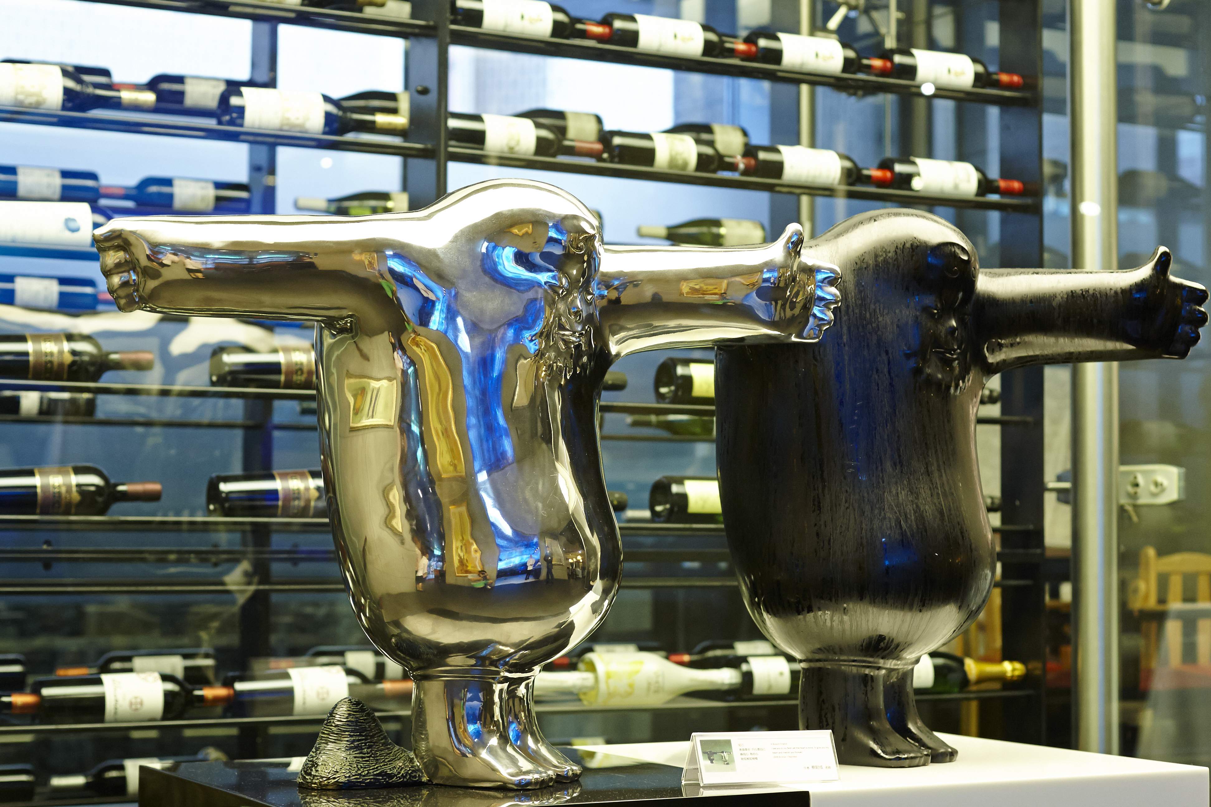 店內也放置了中生代的藝術家-蔡尉成創作《知己》,結合了鋼的精悍與銅的凝練,雕塑出看似輕盈靈巧、實卻渾厚堅毅的肢體線條,作品上華麗精緻的烤漆、彷若潑墨似的斑駁色彩,道盡了對人生歷練感觸的昇華。
