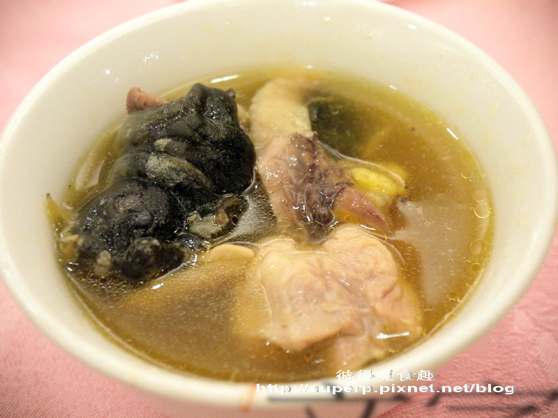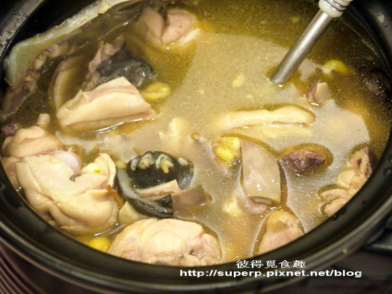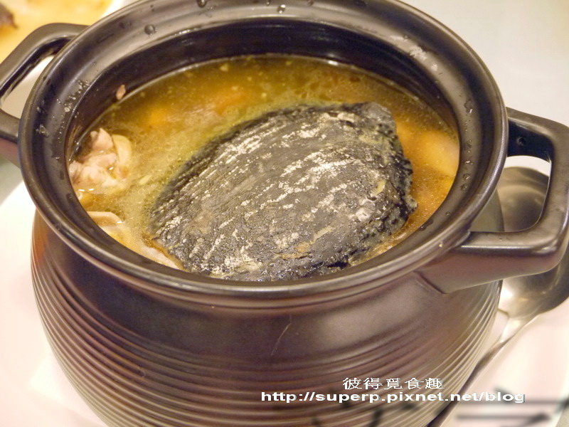 雞仔豬肚鱉$1,200(顧名思義,這鍋湯是雞肉和豬肚以及鱉下去熬的,是個極為特別的組合。其實喝起來還不錯,但砂鍋鴨的鋒頭太健,這湯喝起來就比較還好。不過裡面有鱉肉,喝起來應該是很乒乓叫的。這就交給了一對要拼第二胎的夫婦打包回家,還說如果這樣中了的話,之後還需回來請一桌還願XD)