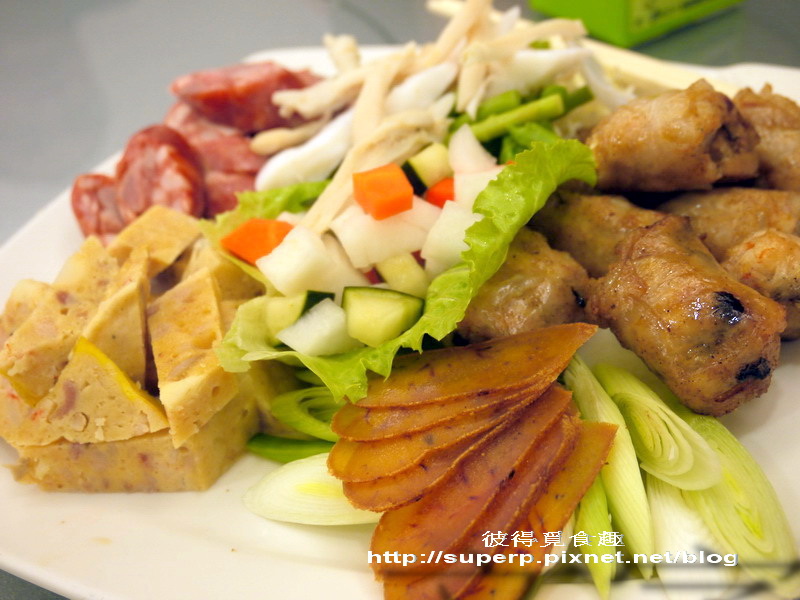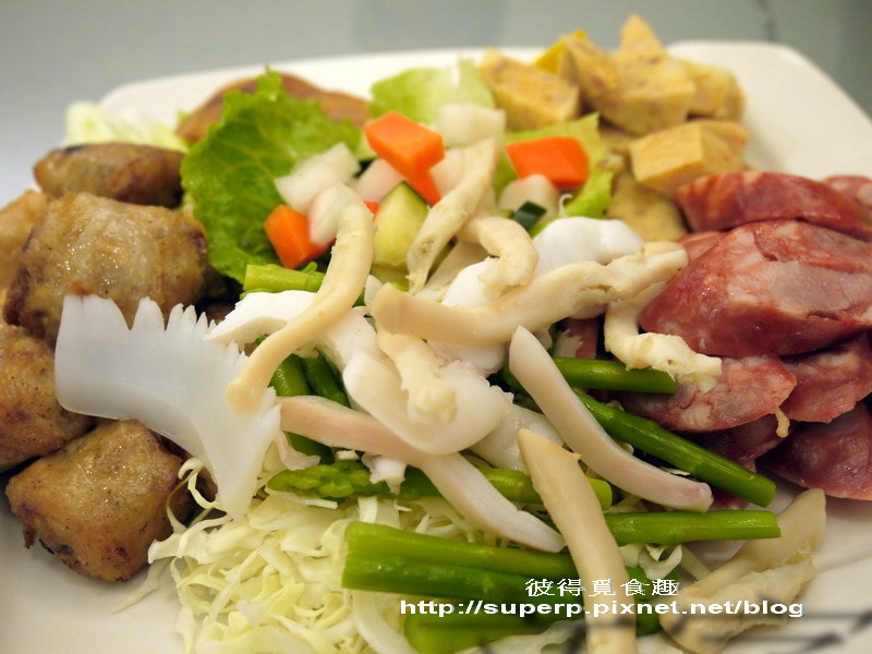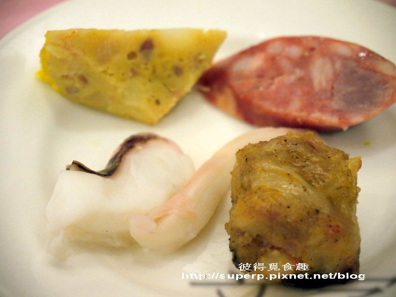 綜合拼盤$700(盤子內從左上順時鐘開始是蟳丸,香腸,蝦棗,跟軟絲,忘記把烏魚子放進去拍。蟳丸吃起來像是蛋跟荸薺一起去做的東西,好像也頗鮮的。香腸很有彈性,蝦棗就是蝦捲球,也很不錯。軟絲還OK。全部都要沾醬會更好吃!推啦)